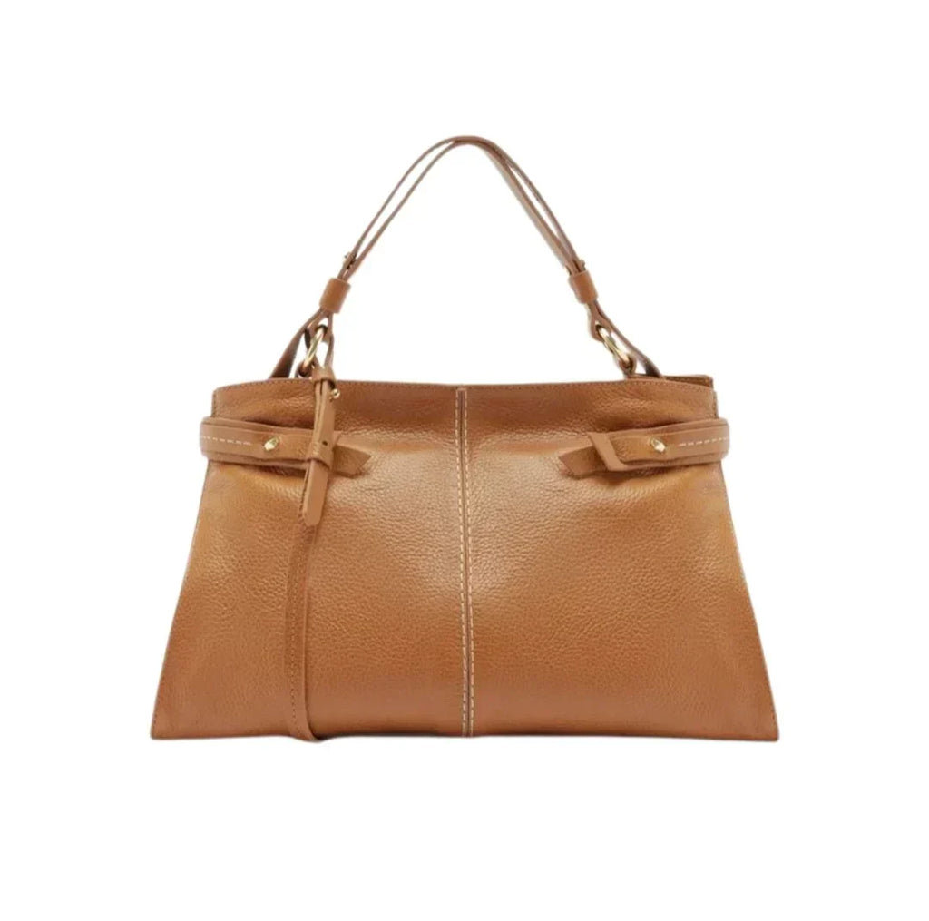 Bolsa Tote Marrom Couro Legítimo Grande Tiras Laterais