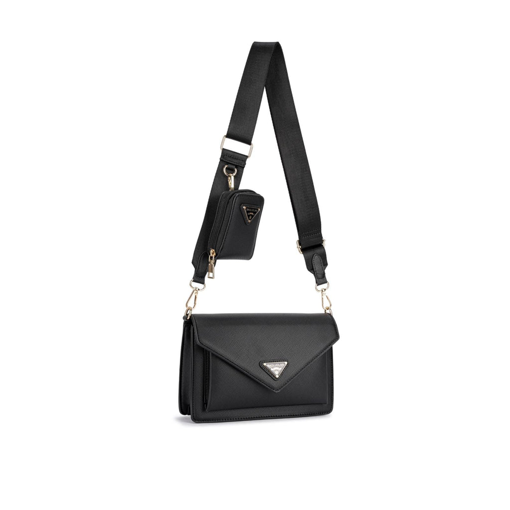 Com visual urbano e moderno, essa bolsa transversal é perfeita para quem busca praticidade com estilo. Possui acabamento estruturado, detalhe metálico triangular na tampa e alça larga regulável com bolsinho removível, que é tendência total. Ideal para compor looks fashionistas e levar o essencial com segurança.